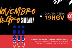 NOTÍCIAS 17/11/2025 12:41O SineBahia promove, nesta quarta-feira (19/11), a partir das 7h, uma ação especial em comemoração ao Novembro Negro na unidade Casa do Trabalhador, instalada no Terminal de Pituaçu, em Salvador. A iniciativa reforça o compromisso do serviço público com o fortalecimento da população negra por meio de inclusão,...