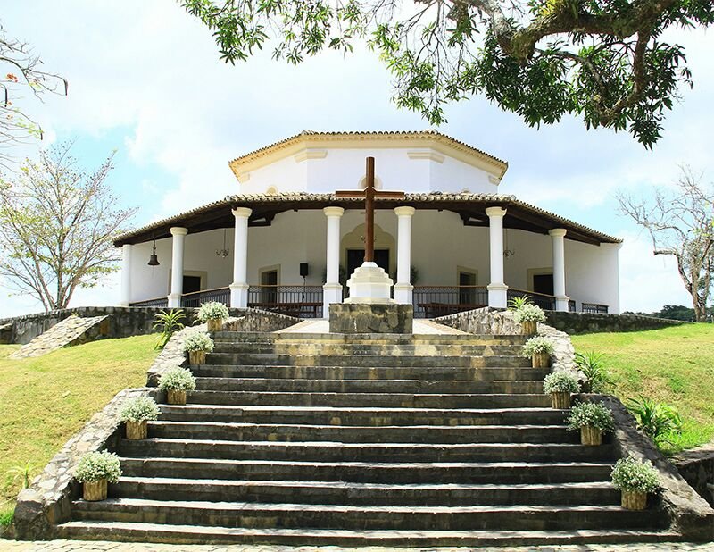 Para quem está hospedado, subir o morro onde está a capela é a saída para fazer contato com o mundo exterior, pois é onde se pode conseguir rede telefônica. A igreja tem formato octogonal de partido centrado renascentista, embora tenha sido construída na segunda metade do século XVII. No Brasil, as Capelas da Torre de Garcia d'Ávila d e a de N. Sra. do Patrocínio, na Paraíba, são outras construções semelhantes. O local costuma receber casamentos e outros eventos sociais e religiosos.
