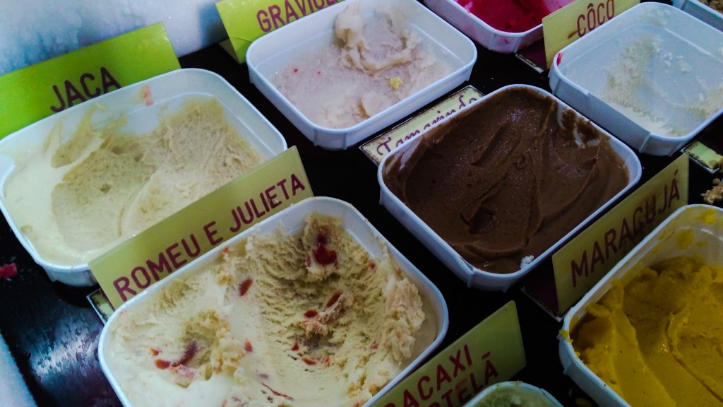 Os tradicionais de frutas são bem concentrados e podem te fazer imaginar que está tirando fruta do pé. Jaca, maracujá, tamarindo, graviola, cupuaçu, açaí, mangaba são alguns dos sabores dos sorvetes. Mas não vá esperando só isso. O mais incrível do lugar são as misturas criadas pelo mestre sorveteiro. E tudo sem conservantes!
