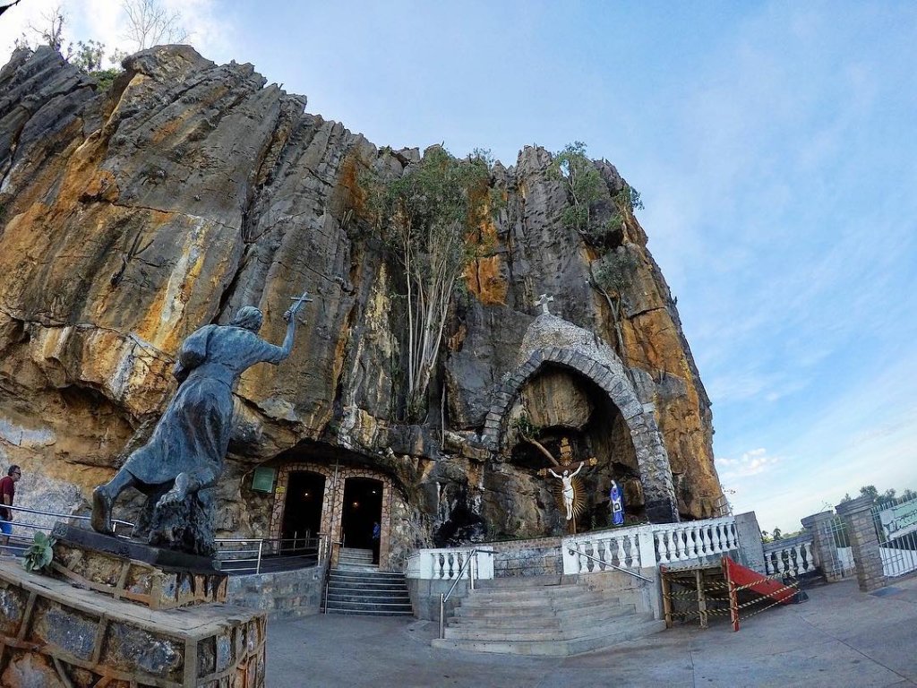 | Santuário do Bom Jesus está instalado em um morro de pedra e grutas (Foto: Reprodução) |