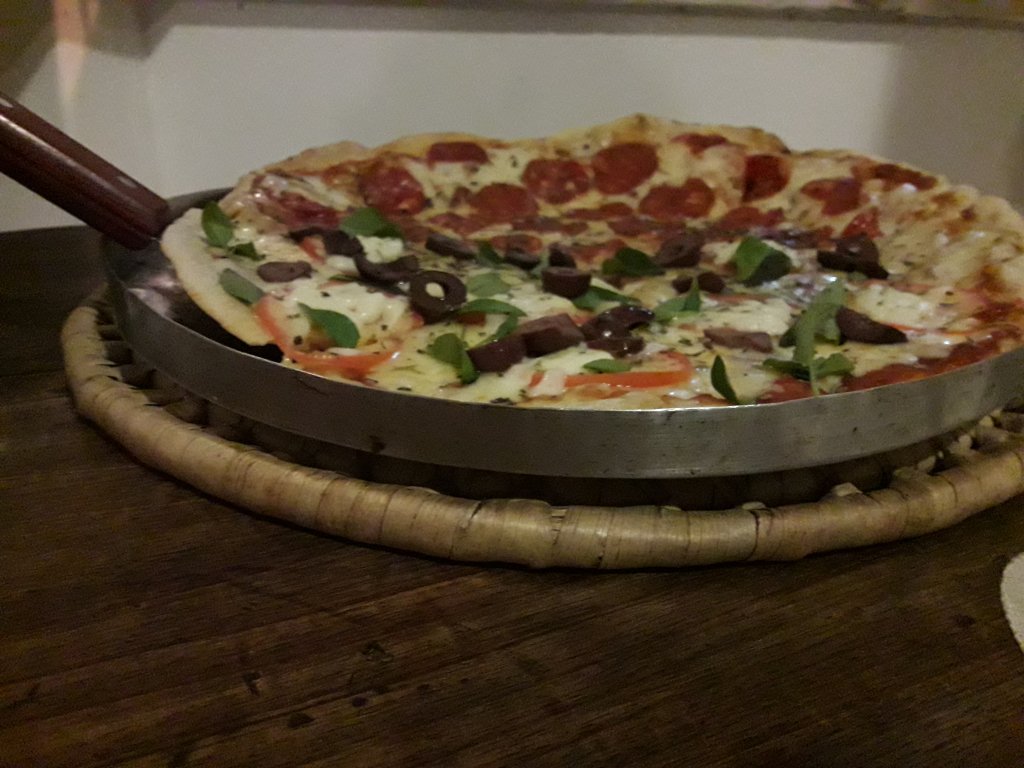 A variedade de sabores é grande, sempre em dois sabores: grande (oito fatias) ou do tamanho de um prato (quatro fatias). O preço também é convidativo, com a grande girando em torno de R$ 40 a R$ 45, dependendo do sabor. Tem pizza para tudo quanto é gosto: das clássicas – portuguesa, calabresa, lombinho – às mais elaboradas - como camarão com alho poró, marguerita especial ou rústica (varia no queijo e no acréscimo de azeitona) e chutney de manga. A casa também tem quatro sabores veganos (sem queijo). A de abobrinha com molho pesto é uma delícia.