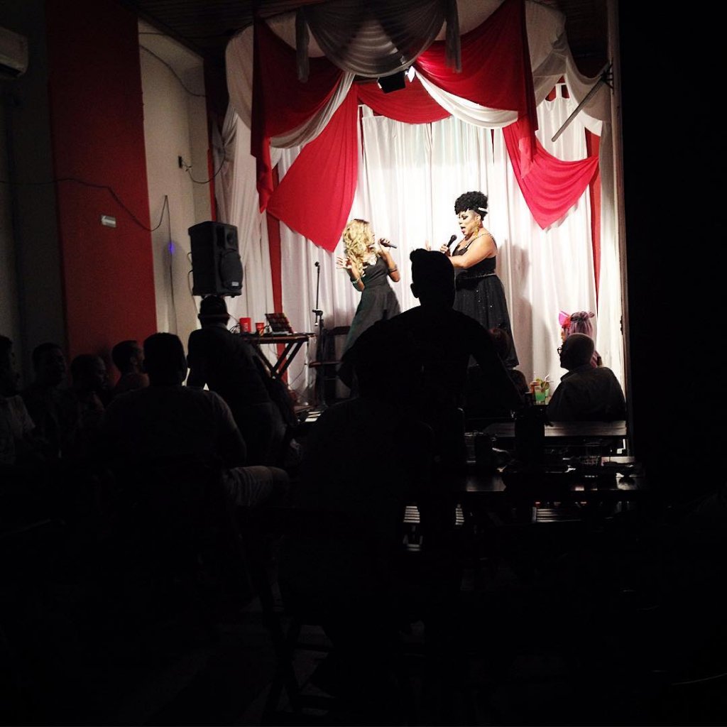 Burlesque Bar e Restaurante: na varanda música ao vivo e show de drags no palco