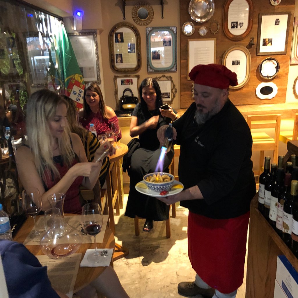 Também não tem carta de vinhos, nem você encontra cerveja por lá… Para escolher o vinho que beberá, um garçom ou o próprio chef te pega pela mão e leva para conhecer os vinhos em exposição, conta os detalhes, descreve os rótulos, origem, harmonização. Aproveite a aula e experiencie a cultura portuguesa.