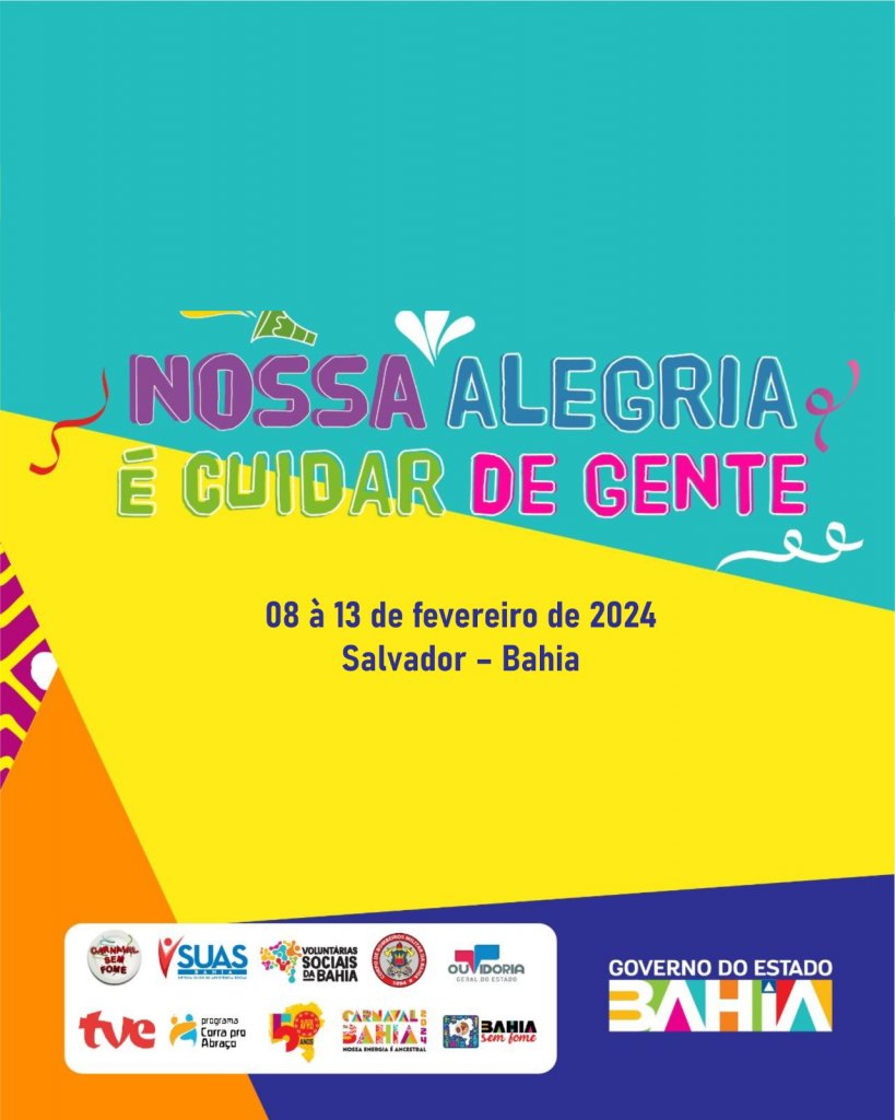 A Secretaria de Assistência e Desenvolvimento Social (Seades), promoverá durante o Carnaval de Salvador, que acontecerá entre os dias 08 e 13 de fevereiro de 2024, um conjunto de ações estratégicas do Programa de Erradicação do Trabalho Infantil (AEPETI), com o projeto “Nossa alegria é cuidar de gente”.