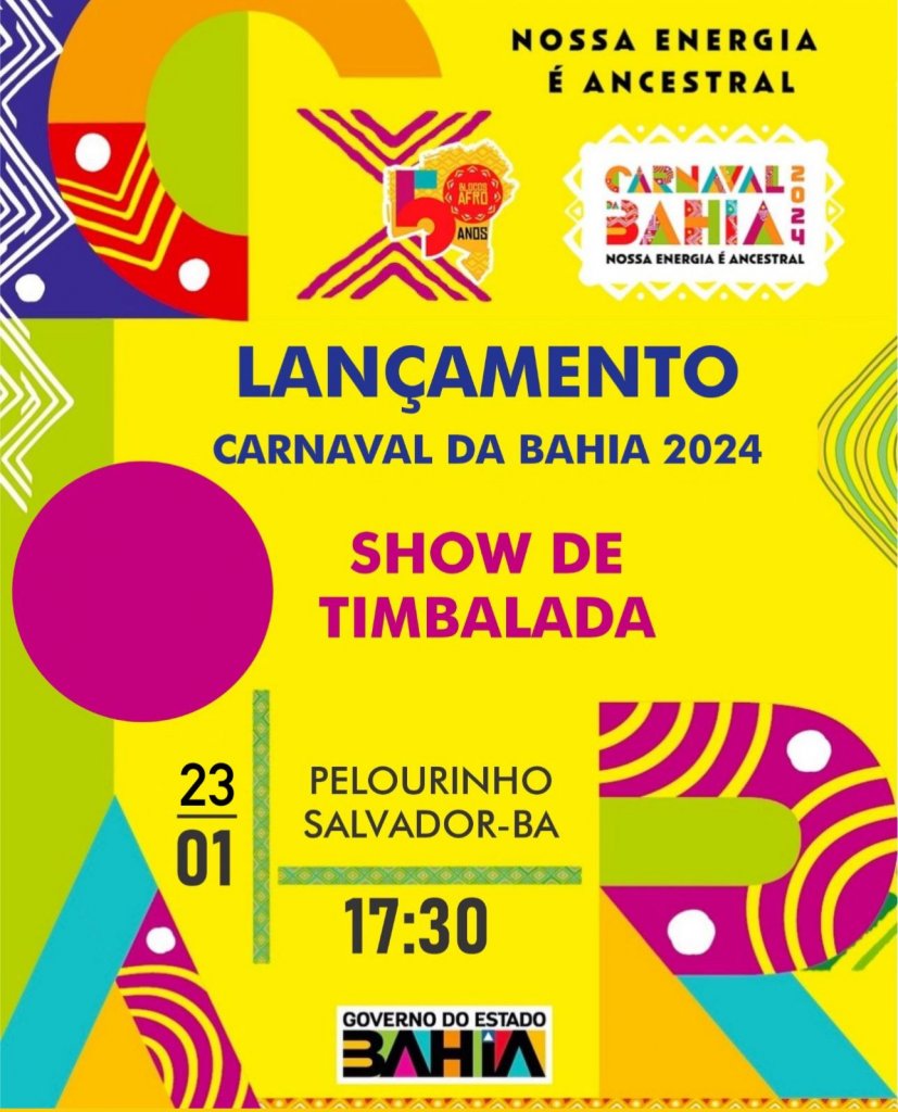 O evento trará como atração a banda Timbalada, um dos mais importantes nomes da cultura afro-baiana, contando com a presença de grandes autoridades como o vice-governador da Bahia, Geraldo Júnior. Na ocasião, o Governador do Estado, Jerônimo Rodrigues, apresentará a programação oficial do Carnaval, que este ano traz o tema “50 Anos de Blocos Afro. Nossa Energia é Ancestral”.