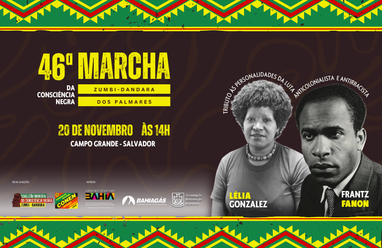 A 46ª Marcha da Consciência Negra Zumbi-Dandara dos Palmares toma as ruas do Centro de Salvador no dia 20 de novembro de 2025, a partir das 14h, fortalecendo um legado de resistência e mobilização que atravessa quase meio século de história. Organizada pela Coalizão Marcha da Consciência Negra Zumbi-Dandara e pela Coordenação Nacional de Entidades Negras (CONEN), a marcha é resultado de um processo político e educativo que se estende ao longo do ano, com seminários, oficinas e ações de base que reafirmam o protagonismo do povo negro na construção do Brasil.